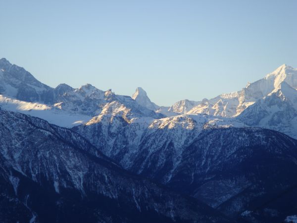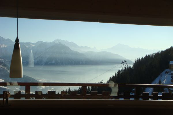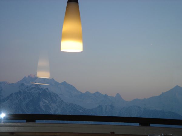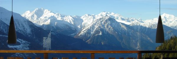 Auf knapp 2000 Meter geniessen Sie den einmaligen Blick auf die "Walliser Grandiosen". Vom Weißhorn im Westen bis Weißmies im Osten. Zentral steht das Matterhorn mit Mischabel, Dom und Alphubel.