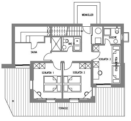 - 10 Betten (1 Master-, 2 Doppel- und 1 Vierbettzimmer)